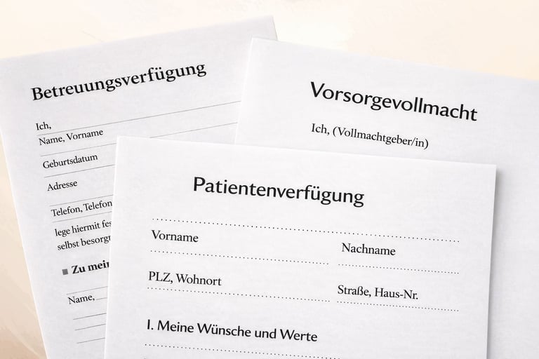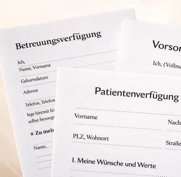 Viele Menschen möchten ihre Wünsche selbst bestimmen und suchen eine verständliche Orientierung zu den passenden Dokumenten. In meiner Beratung besprechen wir die wichtigsten Bausteine in klaren Worten: